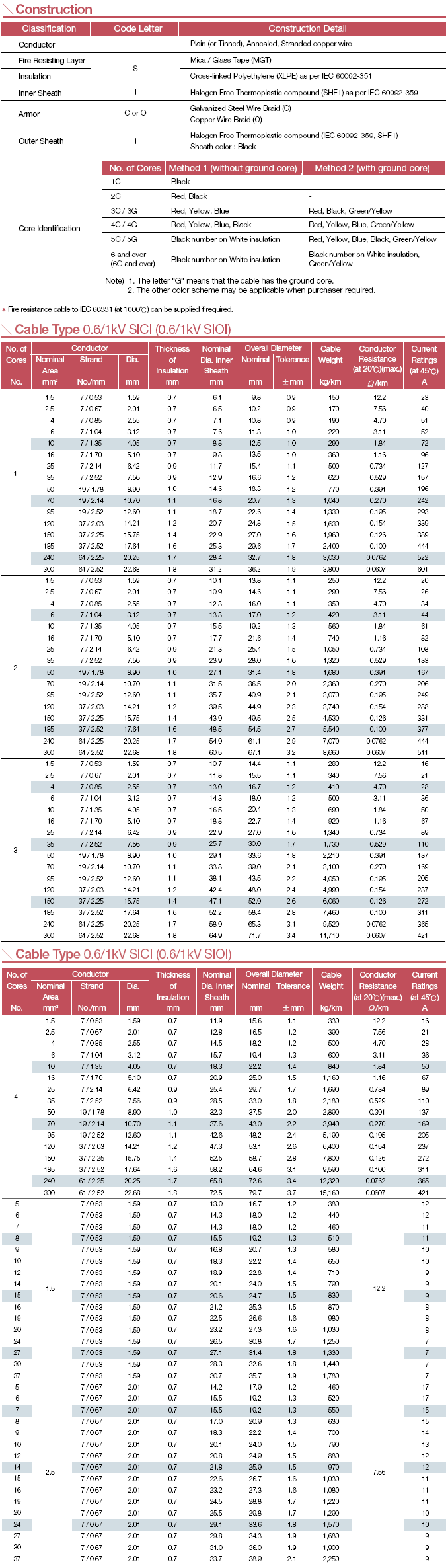 Fire Resistance     : IEC 60331 (750 0C or 1000 0C)