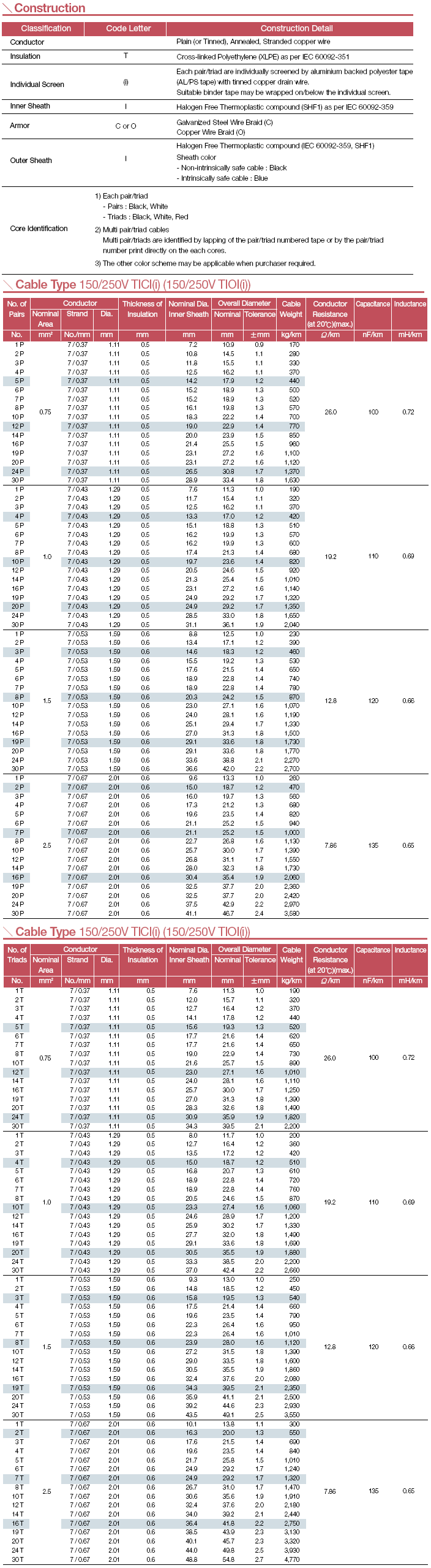 This cable is designed for telephone & instrument circuits up to 150/250V.