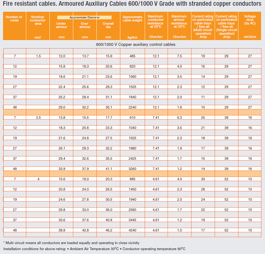 Äa lõi bá»c thép, Viá»n mica& cách Ä‘iện XLPE, Vá» bá»c dây cáp phụ trợ LSF 600/1000V cấp vá»›i dây đồng sợi
