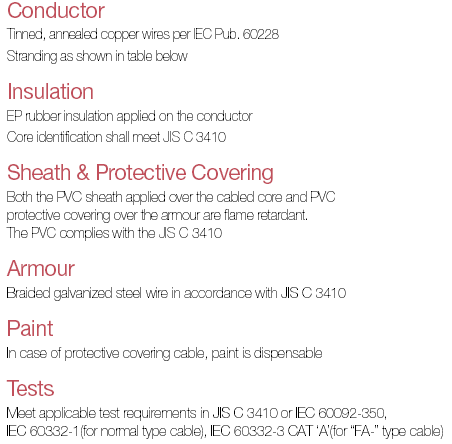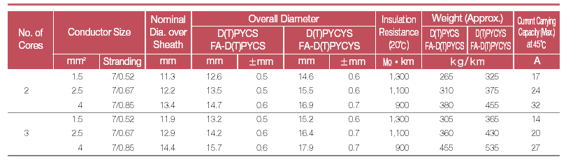 Table 4 (0.6/1kV EP Rubber Insulated PVC Sheathed Armoured Cables- Common Shielded, Flame Retardant)